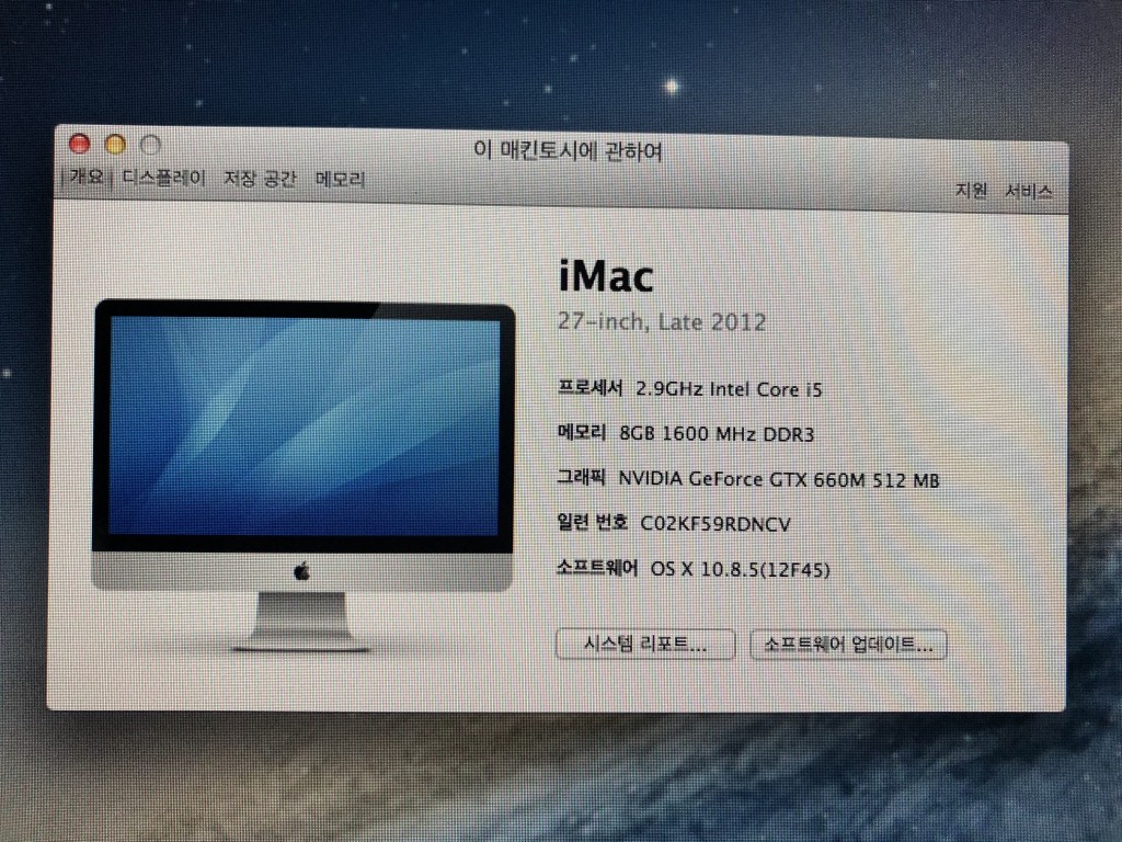 1. 물품명 : 아이맥 2012 late 27인치